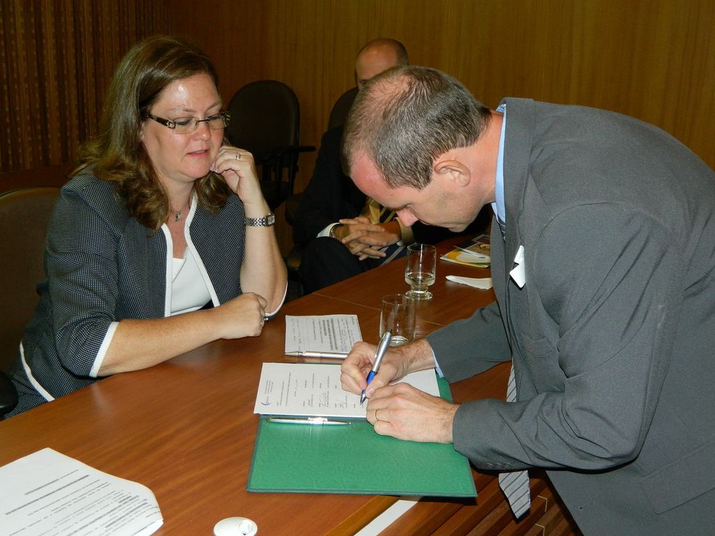 Prof João Bosco assina o termo de participação observado por Cristina Mussi |