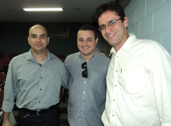 Douglas Nascimento Gomes, do RH da Oil States Brasil entre os professores do curso de Tecnologia em Construção Naval, Edmilson Monteiro e Carlos Alberto Martins (de óculos), |