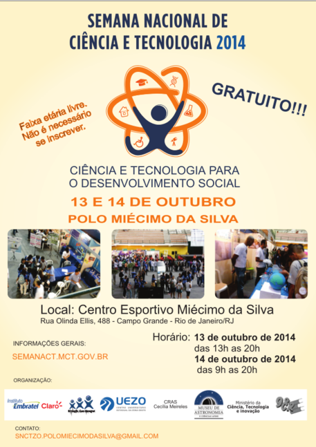 As atividades da SNCT 2014, no Pólo Zona Oeste, serão: