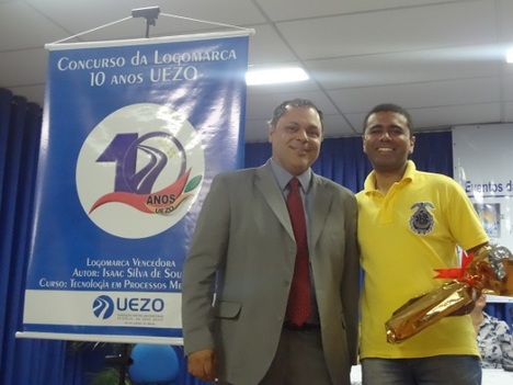 O Reitor com o aluno Isaac Souza, criador da logomarca dos 10 anos da UEZO |