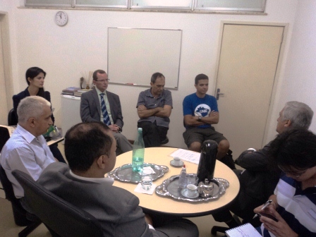 Na sala da Reitoria: No sentido horário o Reitor, o Auditor, a Advogada, o Vice-reitor, o Pro-reitor de Administração e Finanças o aluno Nilson Felipe, ouvem o Deputado.