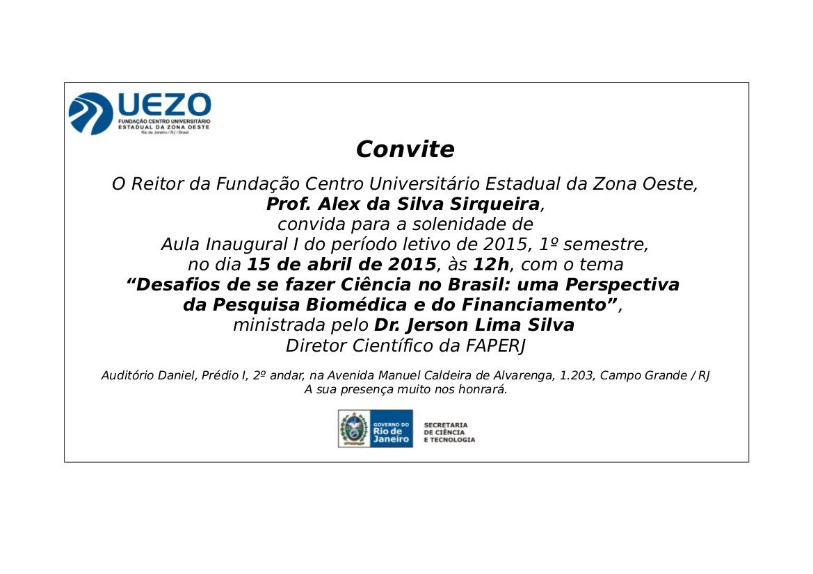 Duas aulas inaugurais vão marcar o início deste semestre letivo na UEZO. Confira os convites abaixo: