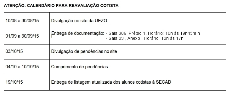 Em atendimento à Deliberação Nº20/2014 do COEPE, começa, em 01/09/15, a reavaliação dos discentes ingressantes pelo sistema de reserva de vagas - cotas.