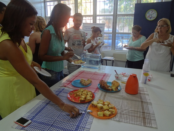 A seguir, os participantes do evento puderam colocar essas dicas em prática, e, literalmente, "puseram a mão na massa", produzindo tortas com ingredientes nutritivos e farinhas alternativas AO TRIGO (como as de arroz e milho, além das féculas de batata e de mandioca).