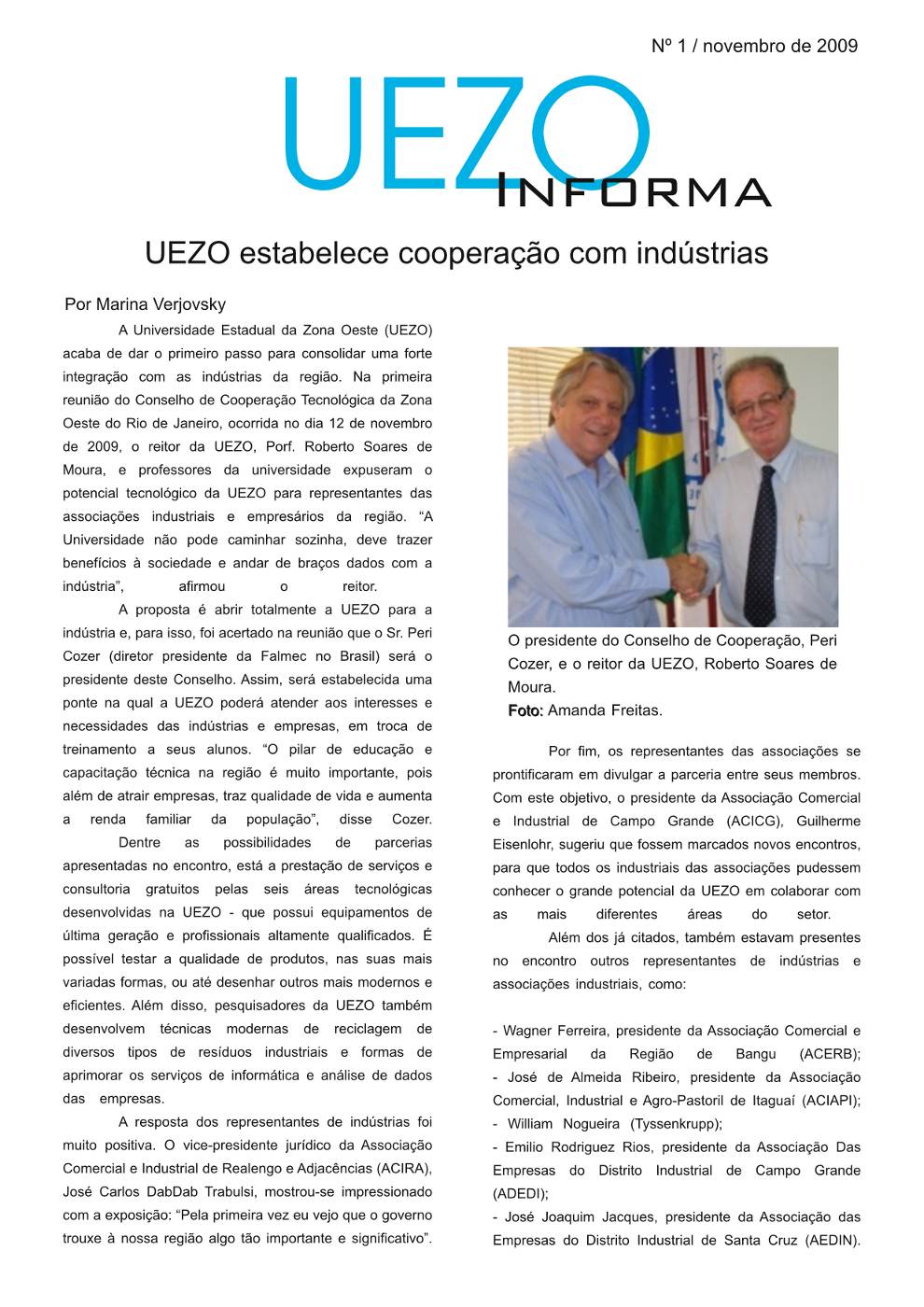 Informativo UEZO nº 01 – UEZO estabelece cooperação com indústrias