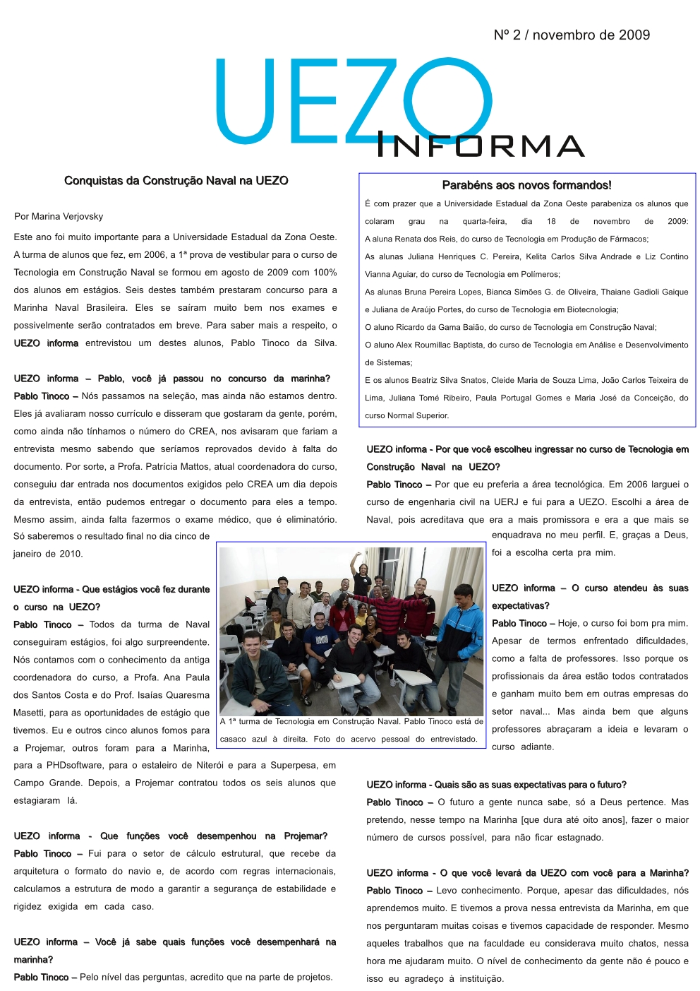 Informativo UEZO nº 02 – Conquistas de Construão Naval na UEZO