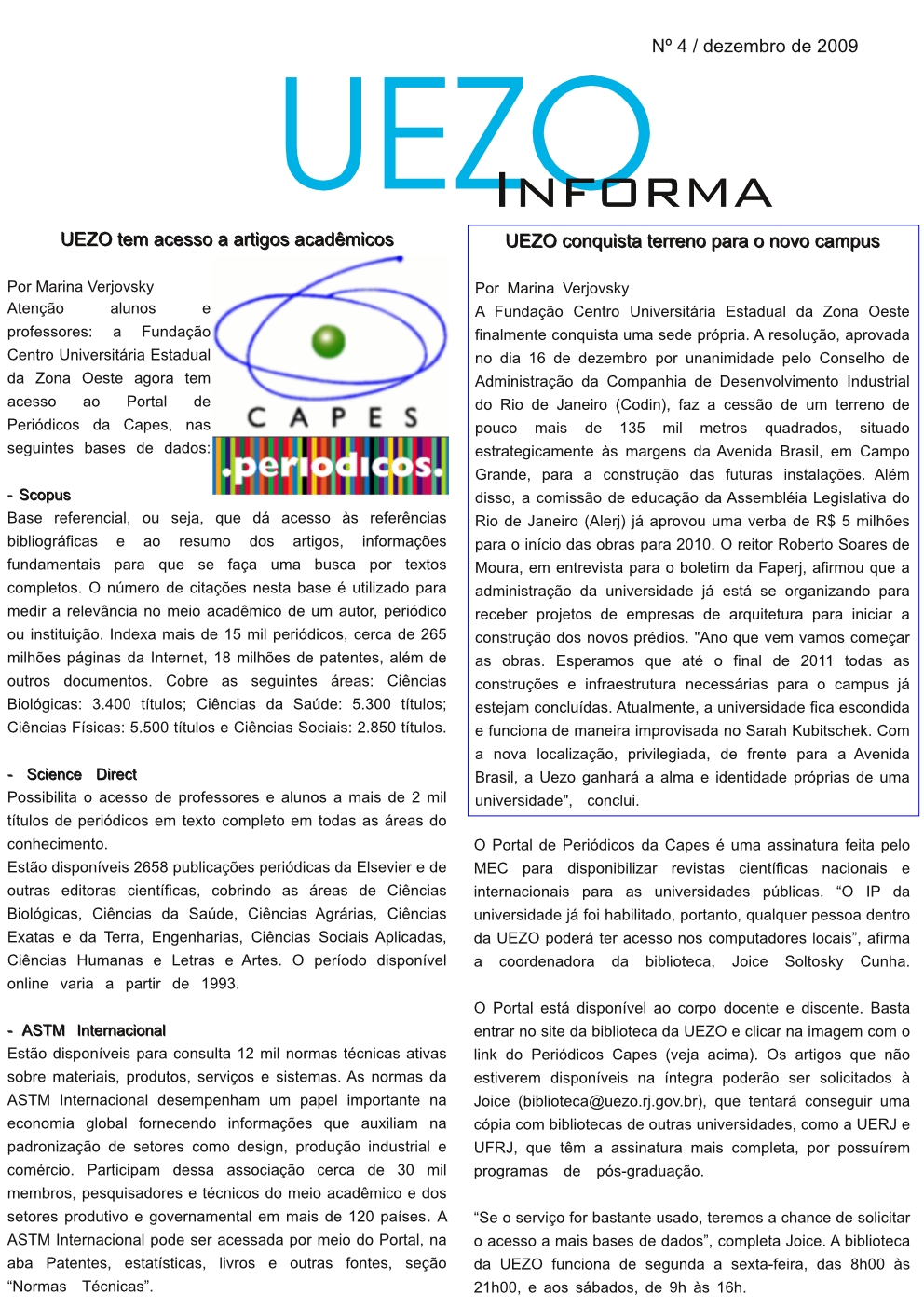 Informativo UEZO nº 04 – UEZO tem acesso a artigos acadêmicos