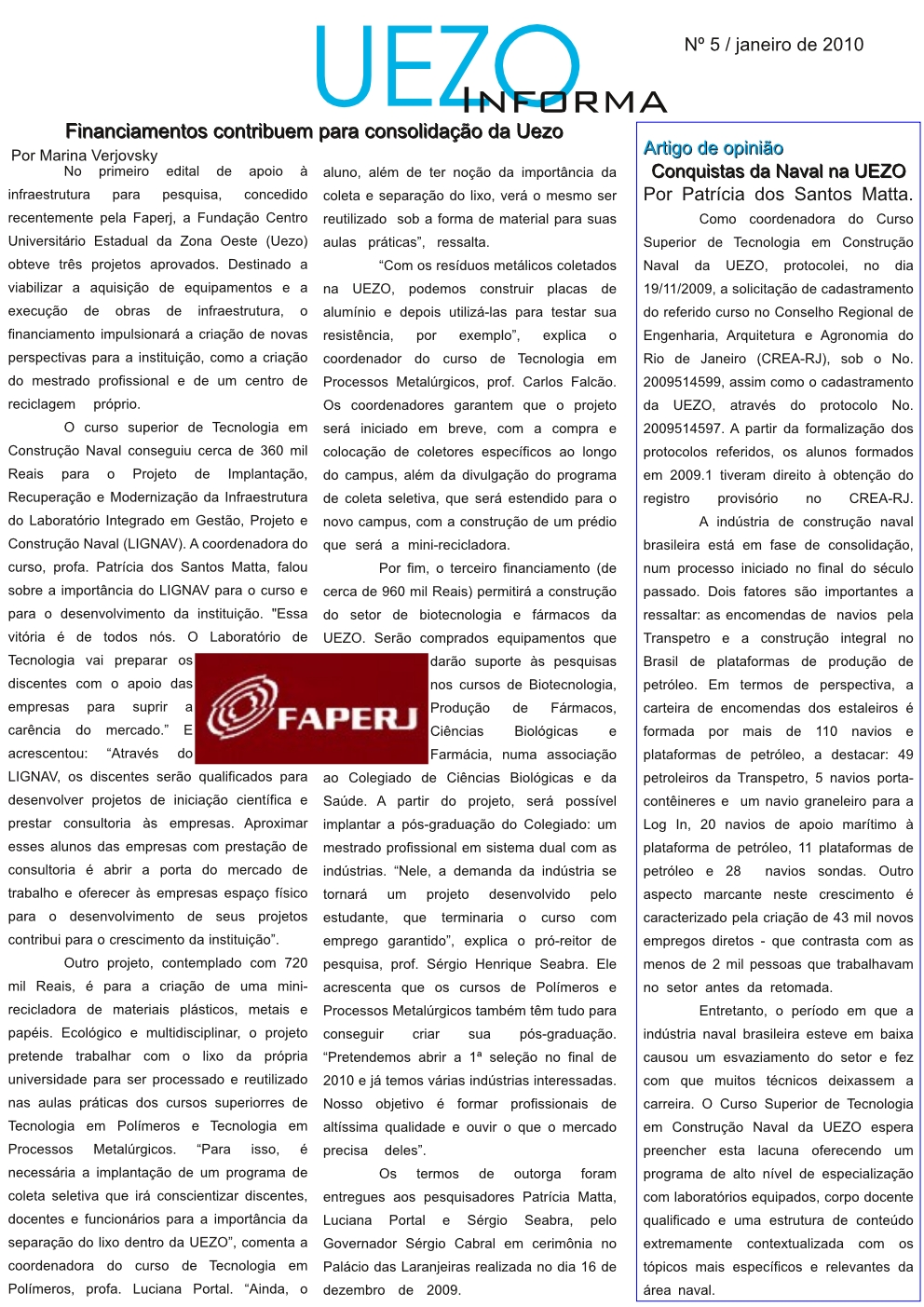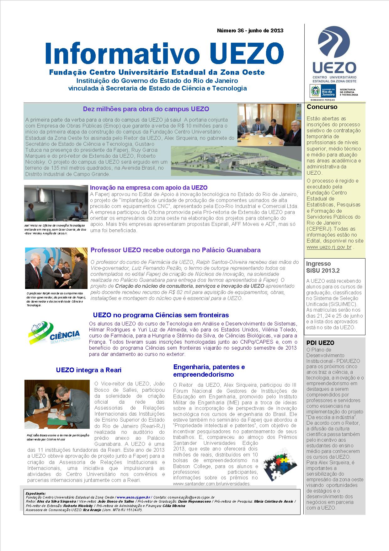 Informativo UEZO nº 06 – Faperj prestigia UEZO na revista Pesquisa Rio