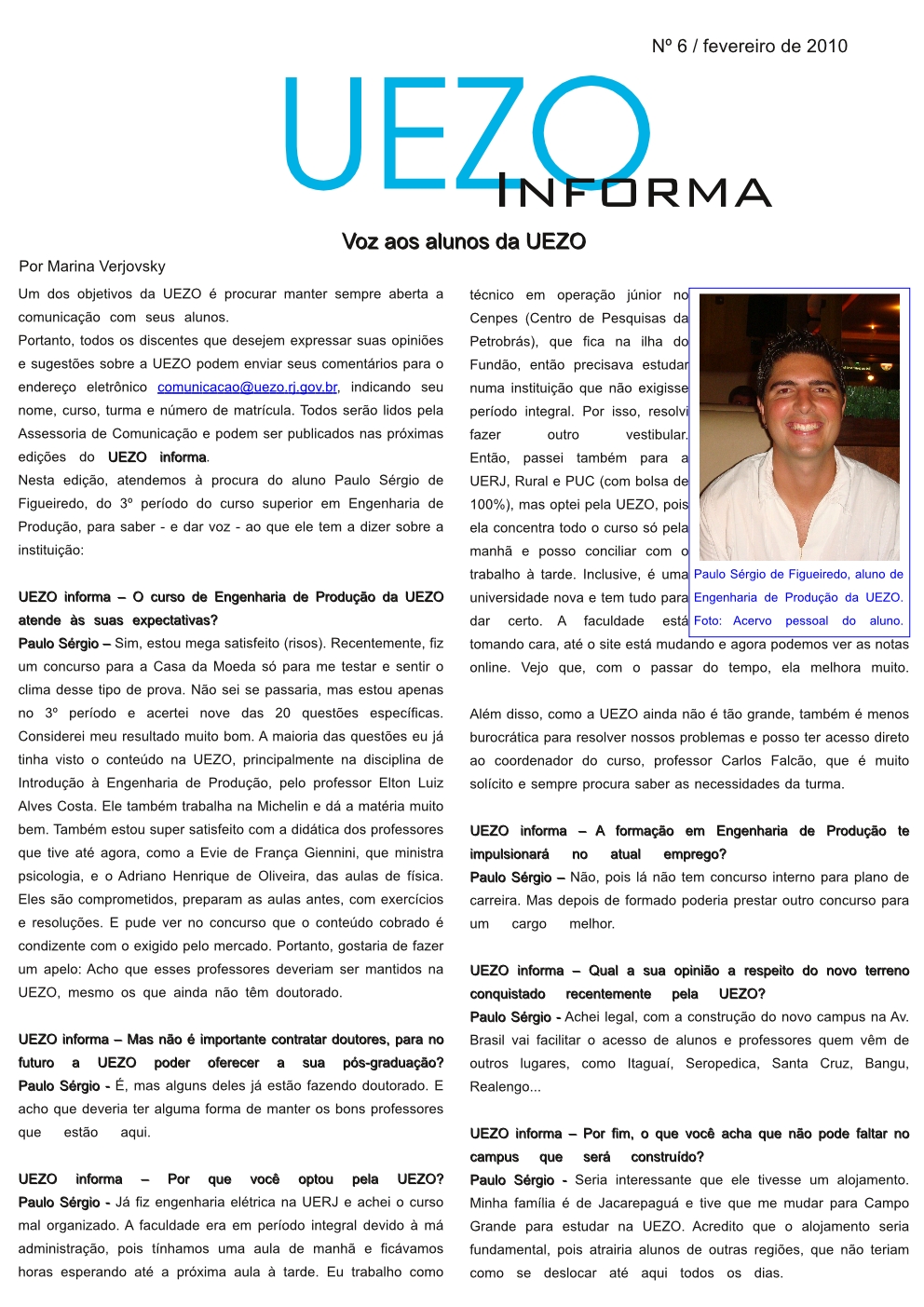 Informativo UEZO nº 06 – Voz aos alunos da UEZO