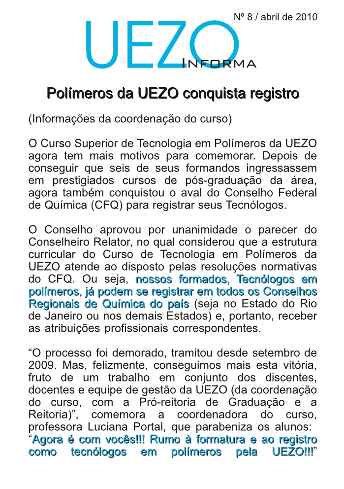 Informativo UEZO nº 08 – Polímeros da UEZO conquista registro