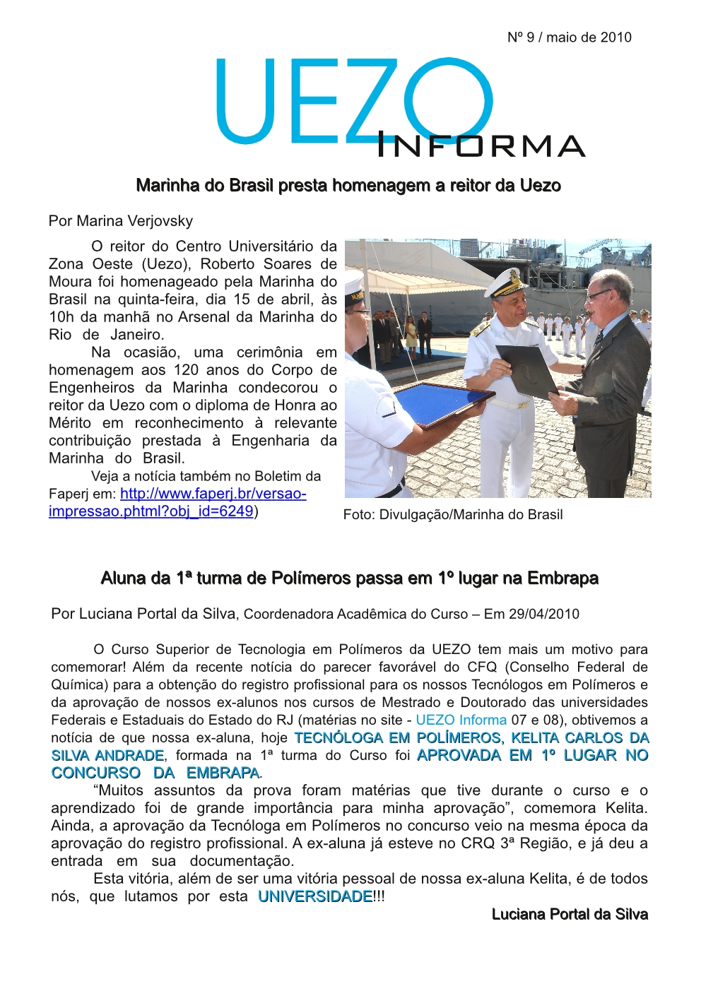 Informativo UEZO nº 09 – Marinha do Brasil presta homenagem a reitor da UEZO